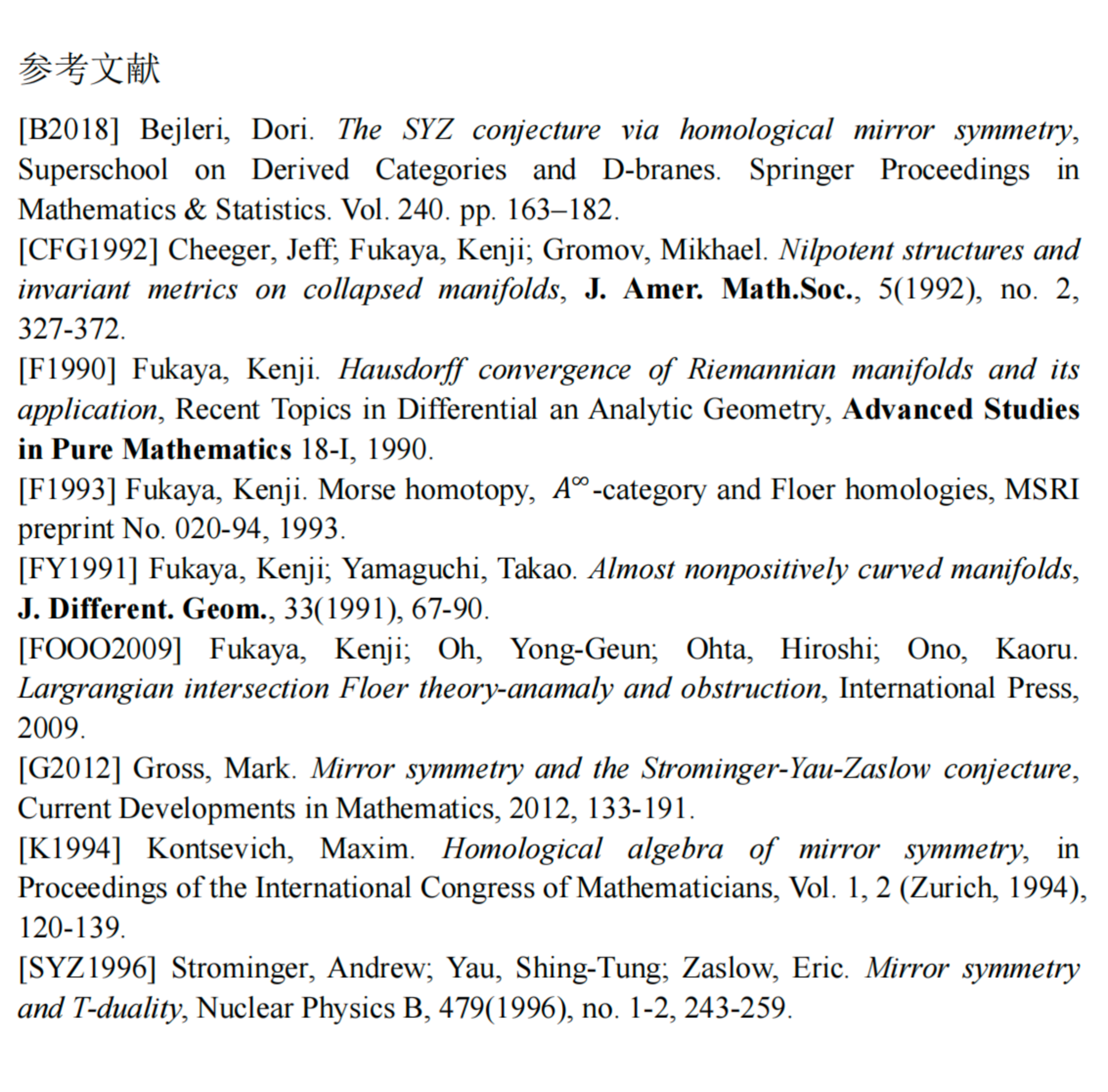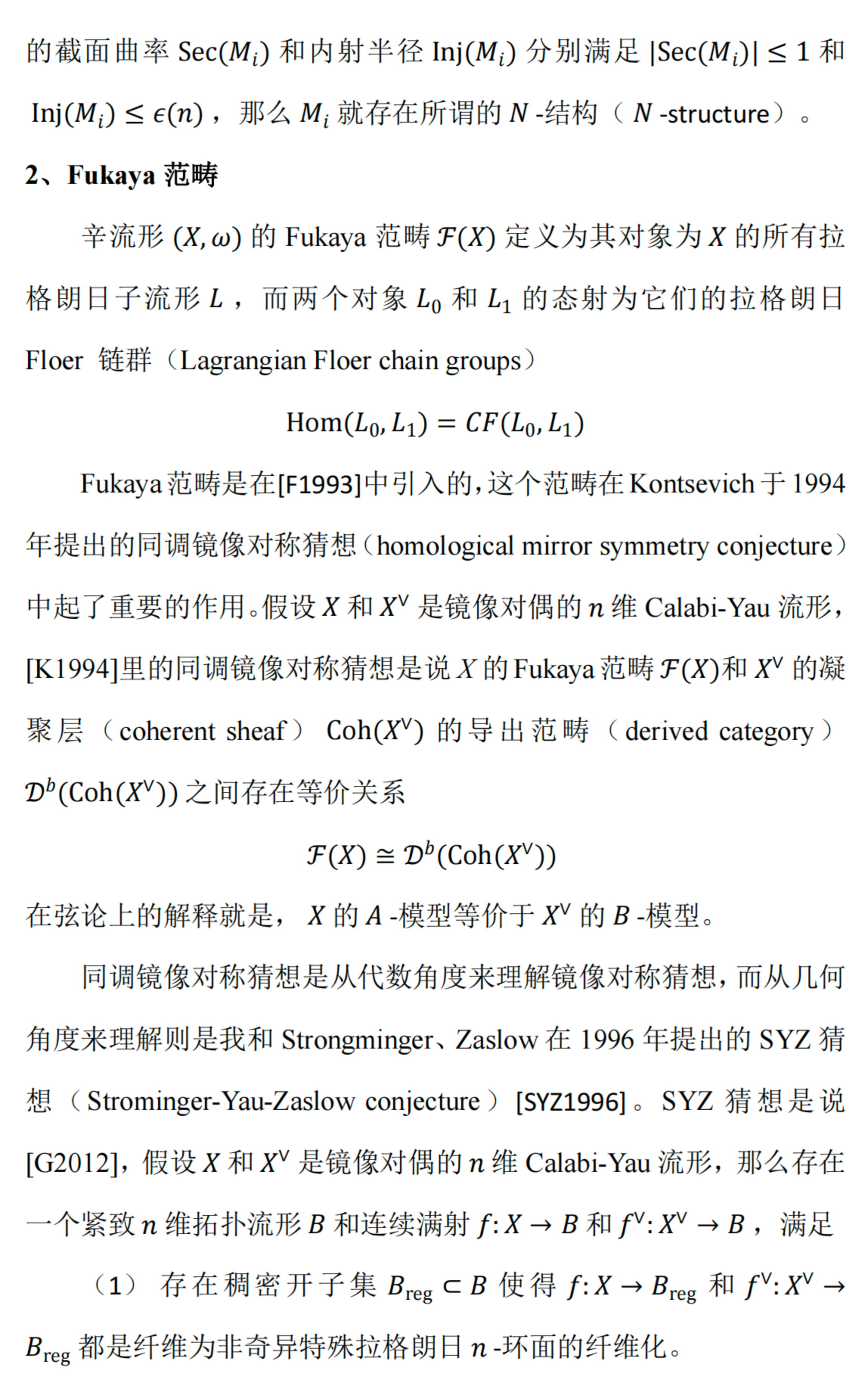 如今,这些设想中的大部分,已经实现或正在实现。在与吴、太田和小野等合作者的共同努力下,我们已经以严格的数学方式构造了与辛流形相关的范畴(利用拉格朗日弗洛尔理论),并将其应用于包括镜像对称在内的多个领域。为此,我们必须理解伪全纯曲线模空间的奇点,并为此发展出一种被称为“虚拟基本链”(virtual fundamental chain)的方法。