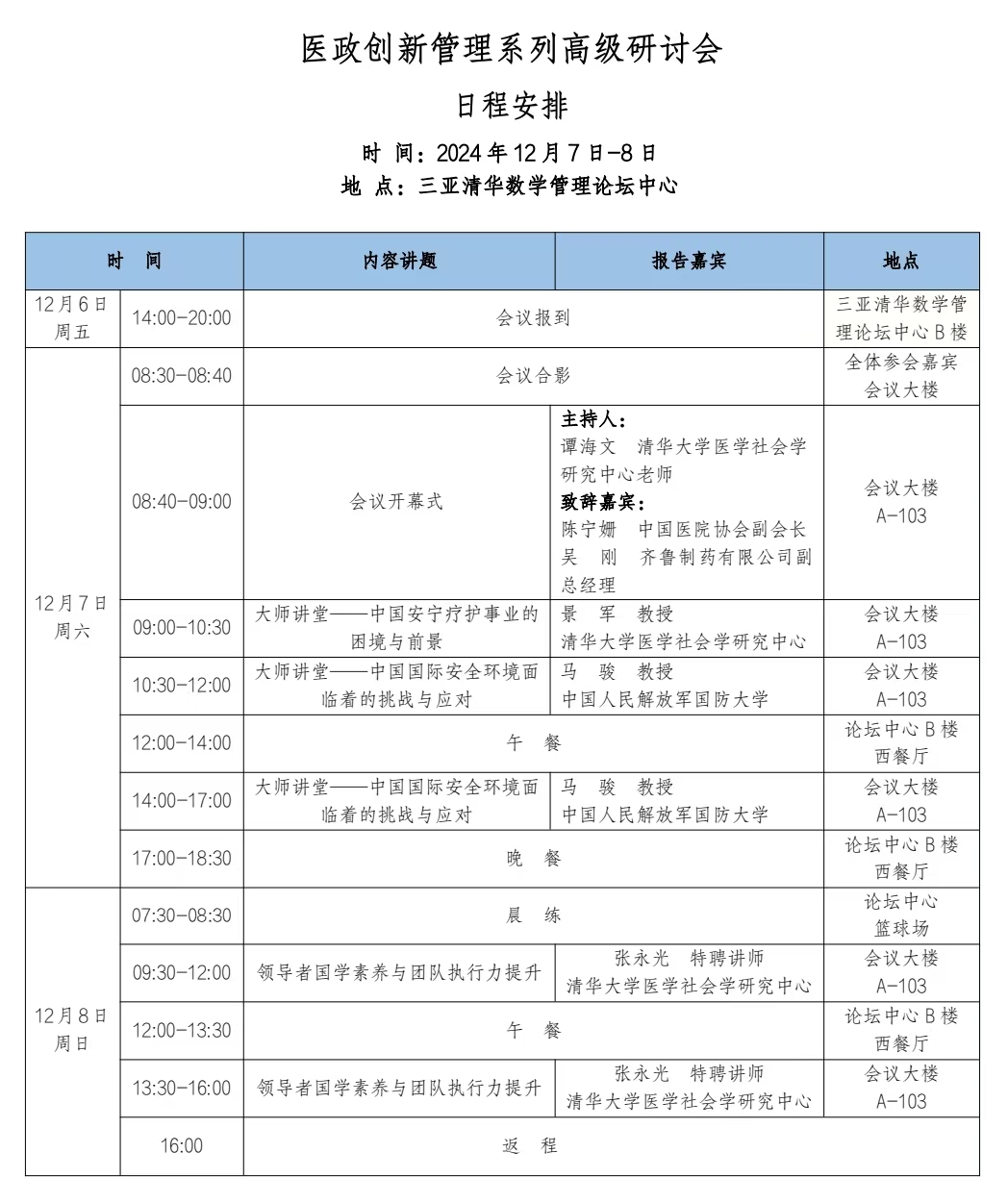 主办单位:中国医院协会支持单位:清华大学医学社会学研究中心三亚清华数学论坛管理中心齐鲁制药有限公司