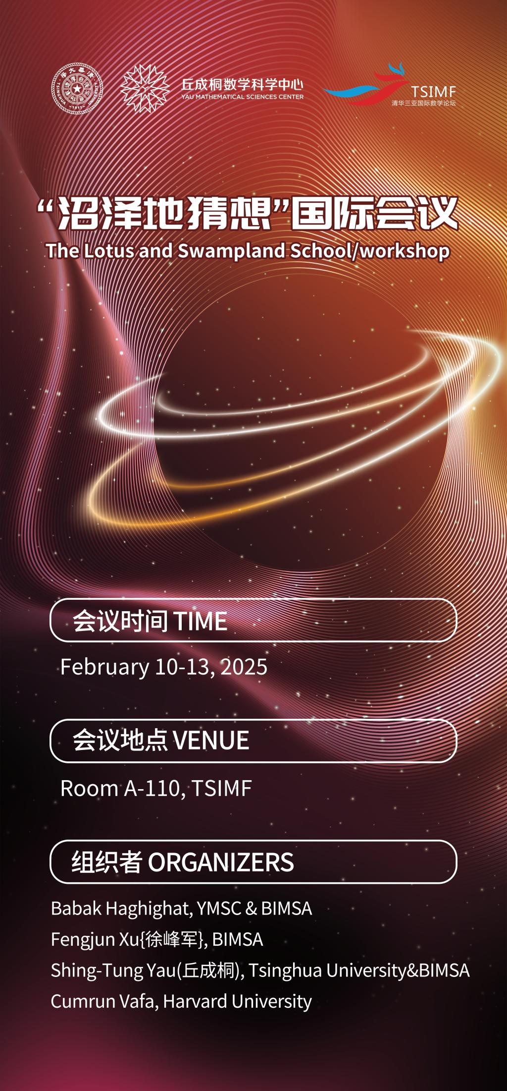 We are delighted to annouce the “The Lotus and the Swampland” School and conference, to be held in TSIMF, Tanya, China, from Feb. 10 to Feb. 13, 2025, hosted by the BIMSA (Beijing Institute of Mathematical Sciences and Applications). This event is proposed by Prof. Cumrun Vafa, who will also be attending it.