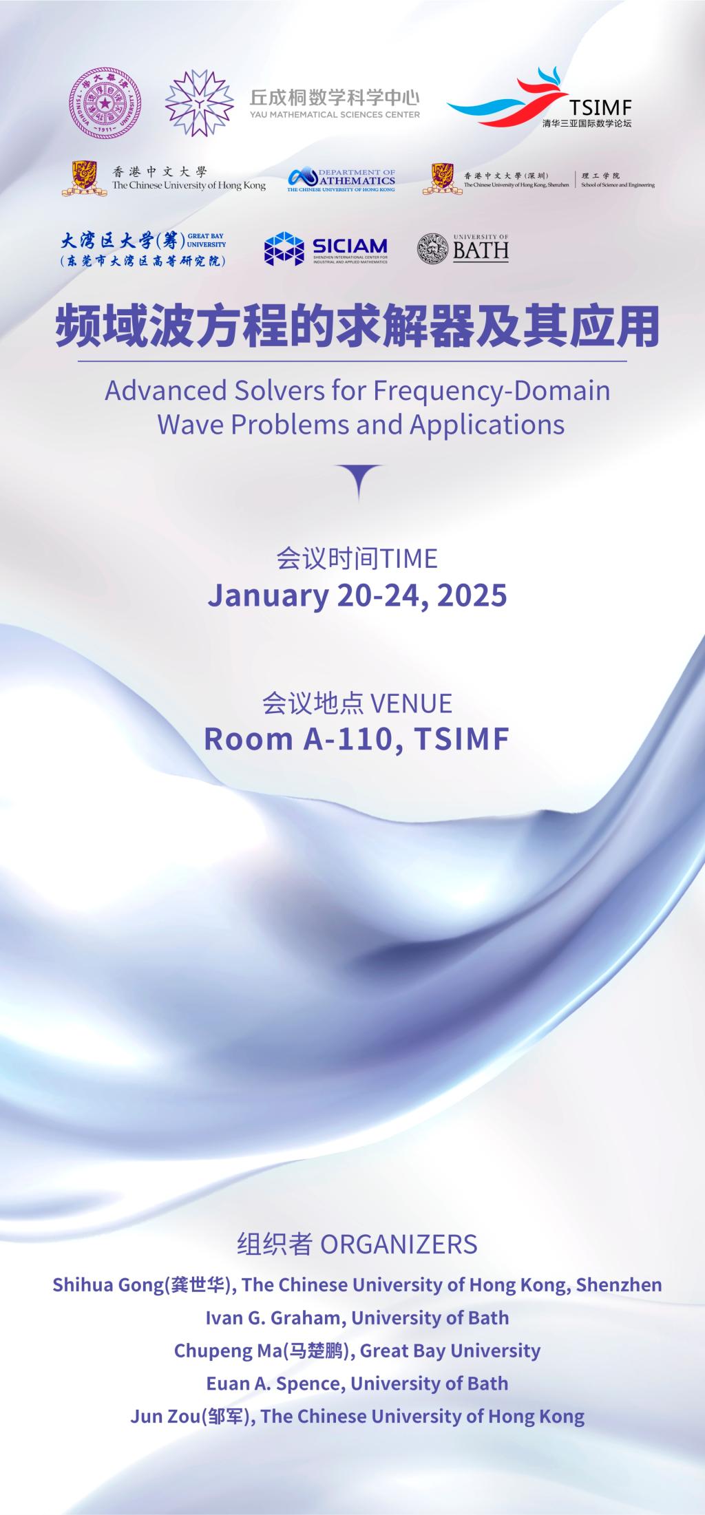 This week-long research workshop will bring together the researchers working at the forefront of numerical methods for frequency-domain wave equations and the corresponding applications. The workshop will have the following three themes.