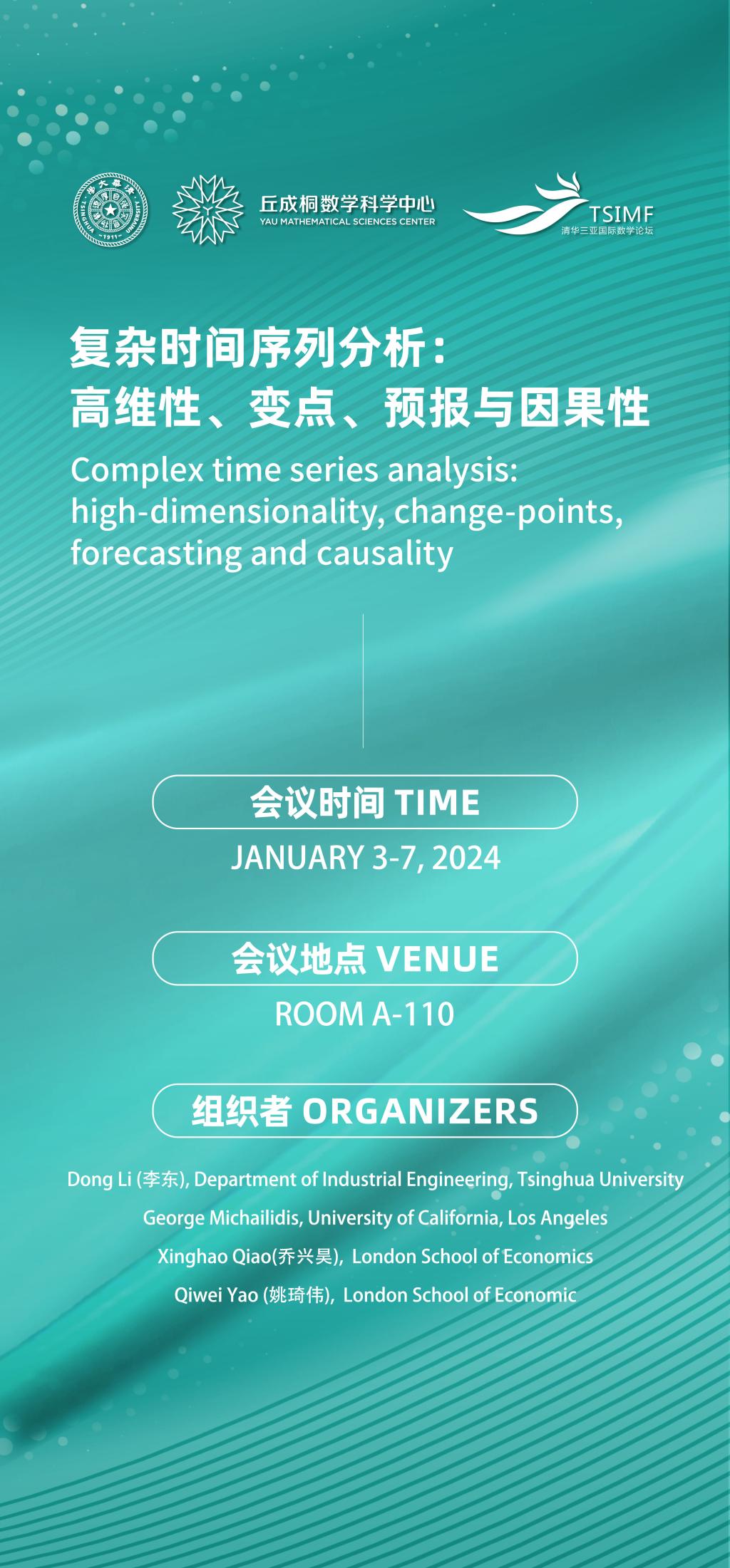 此次研讨会将在统一的框架下,涵盖大型和复杂时间序列分析的四个相互关联的领域。