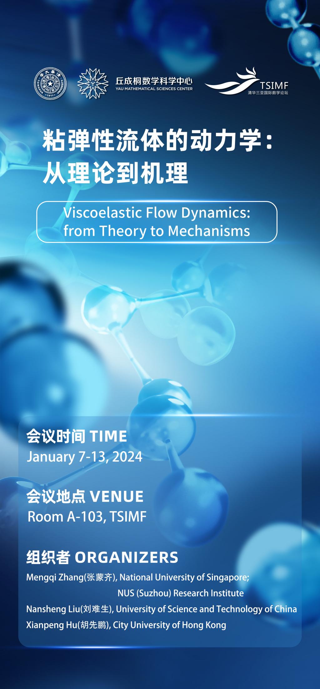 The conference will explore the theme of "Theory and Mechanisms in Viscoelastic Flows," with a specific focus on the nonlinear dynamics of viscoelastic fluids. These fluids are ubiquitous in both natural phenomena and engineering processes and hold significant practical value. Understanding the dynamics of viscoelastic fluids has a rich history and encompasses a diverse array of research topics, presenting a significant challenge for theoretical, numerical, and experimental researchers. Recently, the field has witnessed a surge in new discoveries and discussions, including novel viscoelastic flow instabilities and mathematical properties of the viscoelastic equations, highlighting the need for researchers to come together to exchange ideas and explore future directions. The goal of this workshop is to emphasize the importance of mathematical research and physical mechanisms in viscoelastic flows. Specifically, the workshop will cover various topics, such as the application of dynamical systems approaches to comprehend the flow dynamics of viscoelastic fluids, the existence and smoothness of solutions to the viscoelastic equations, and the observation of nonlinear elastic waves in viscoelastic experiments and how they can be modeled mathematically.