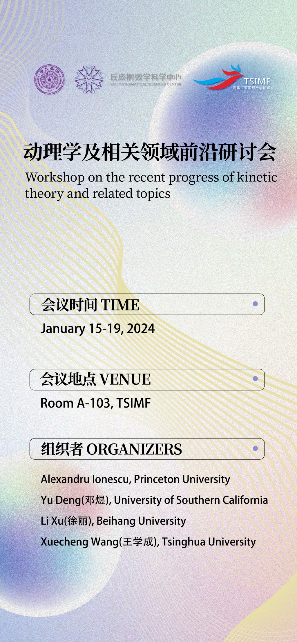 此次会议的主题是动理学及相关领域的最新进展。动理学在研究粒子运动规律中起着重要作用并在等离子物理等领域有着深刻的应用。