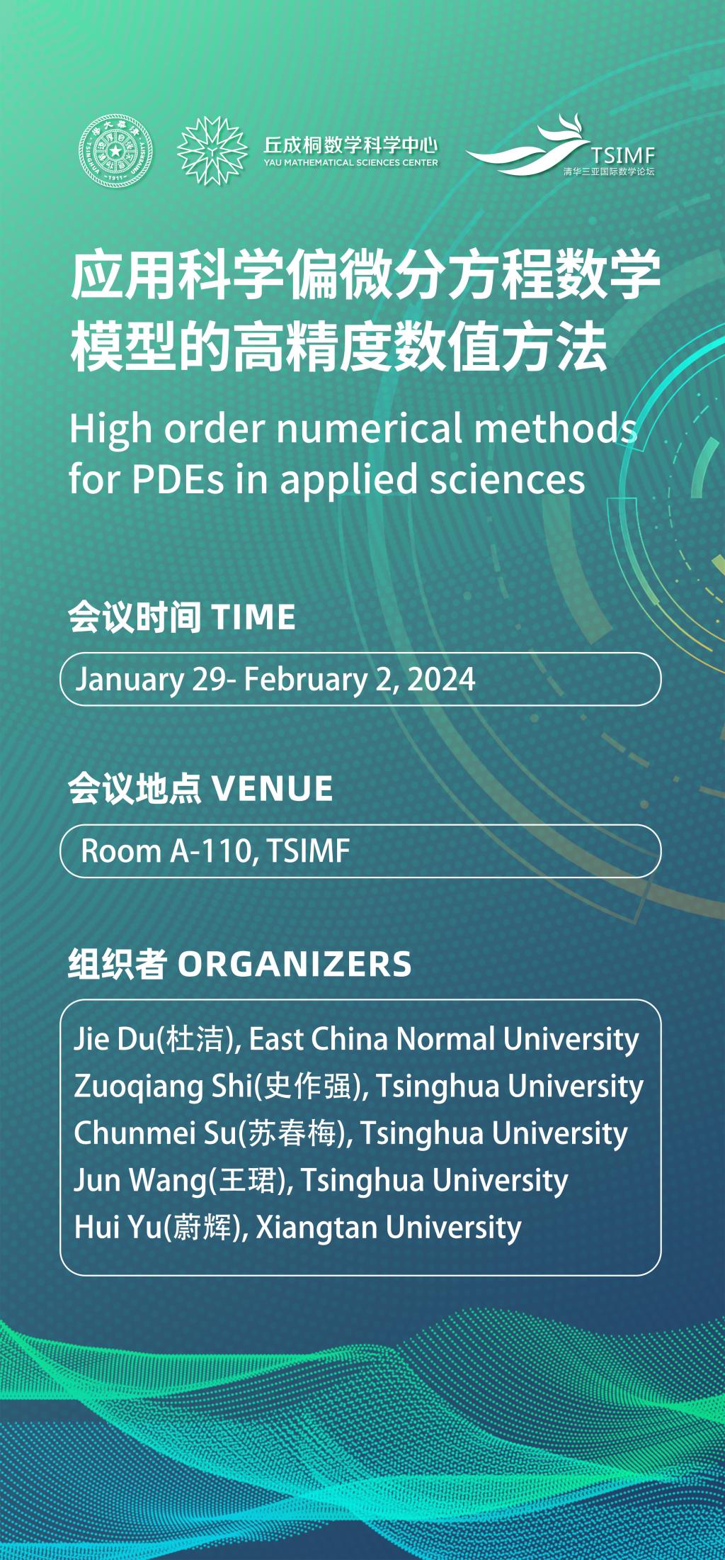 本次会议针对应用科学中广泛使用的偏微分方程数学模型,研究和讨论有限元、间断有限元、谱方、基于积分方程的快速算法等高精度数值方法和模拟应用。拟邀请42位相关领域中的杰出学者,开展学术报告和交流合作。此次会议将极大增进对计算与应用数学中相关学术课题最新成果和发展趋势的交流与讨论,为青年学者开拓学术视野,创造合作机遇。