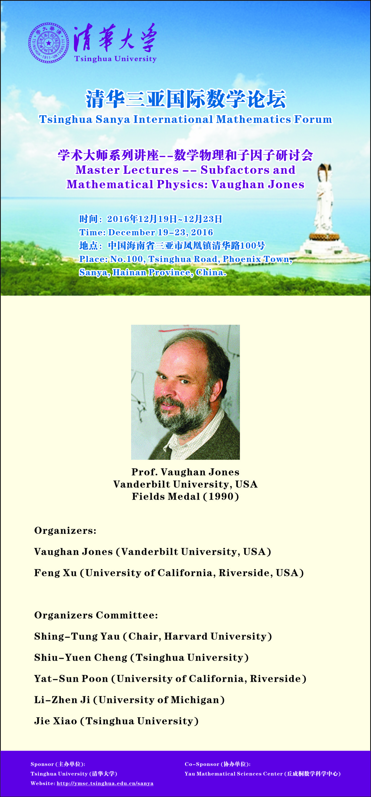 Subfactor theory provides an entry point into a world of mathematics and physics containing large parts of conformal field theory(CFT), quantum algebra and low dimensional topology. This workshop will feature master lectures by Vaughan Jones, and focus on the strong interactions between Subfactors and CFT which have proved to be very fruitful lately.